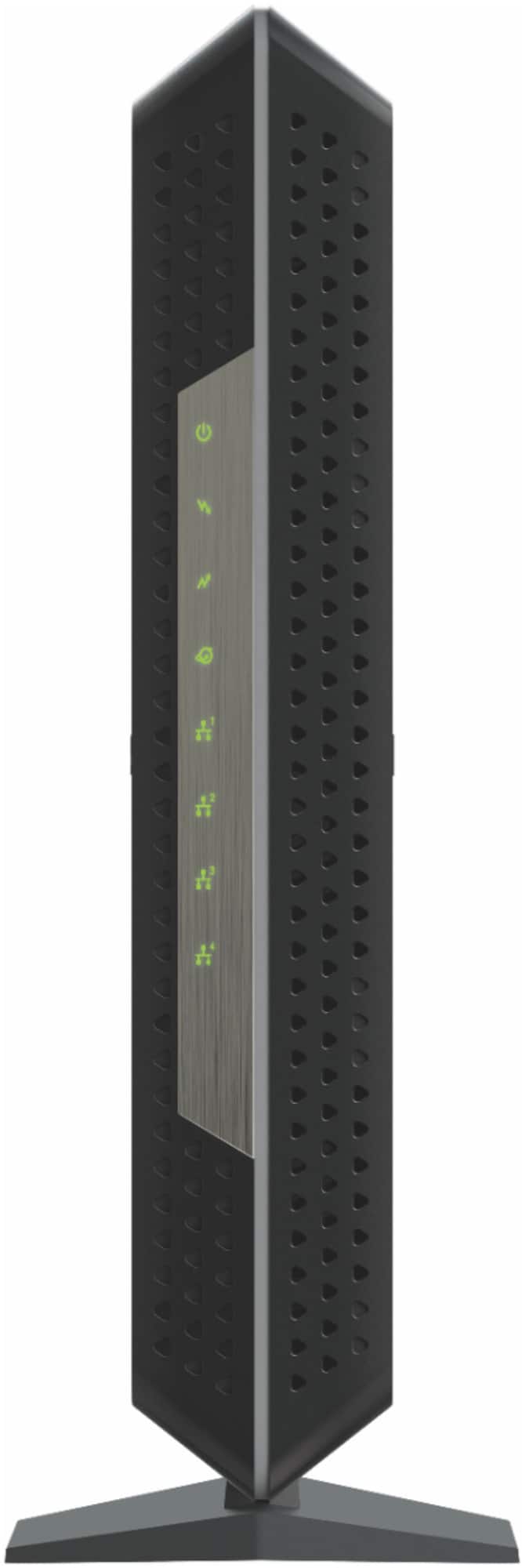 As you unbox the Netgear CM1200, you’re greeted with a sleek, angular design that’s become a hallmark of the Netgear Nighthawk series. The package includes the modem itself, a power adapter, an Ethernet cable, and quick start documentation. Measuring 6.1 x 3.4 x 10.3 inches and boasting four Ethernet ports, the CM1200 is compact yet capable, ready to be the cornerstone of your home network.